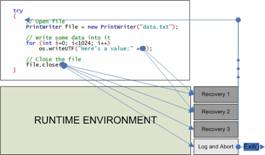 recovery actions should be taken. Note that including code in try blocks does not impair