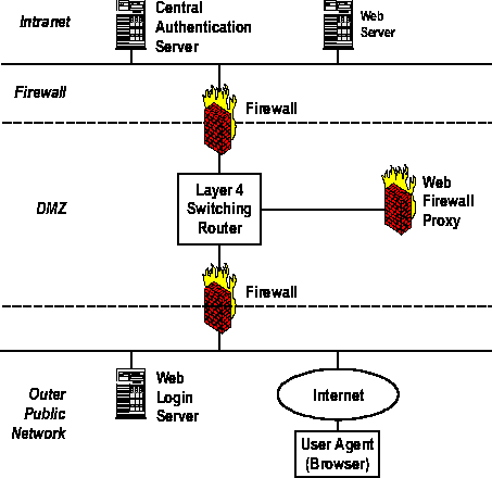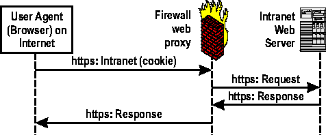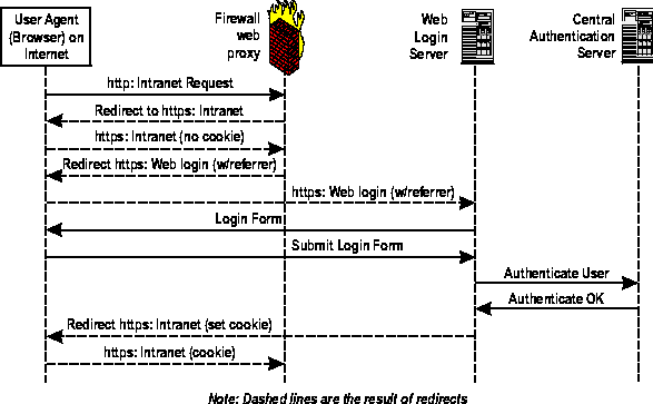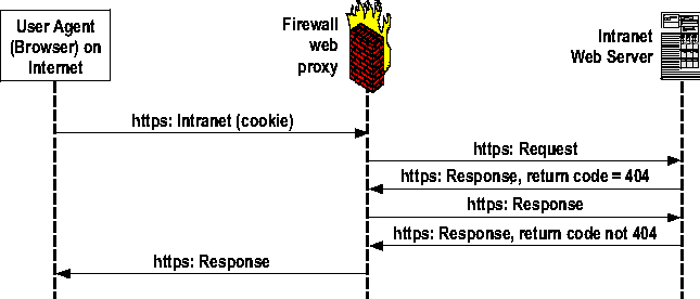 A Secure and Transparent Firewall Web ProxyAbstractThe LANL transparent web proxy lets authorized external users originating from the Internet to securely access internal intranet web content and applications normally blocked by a firewall. Unauthenticated access is still, of course, denied. The proxy is transparent in that no changes to browsers, user interaction, or intranet web servers are necessary. The proxy, a few thousand lines of C running on Linux, has been operating within Los Alamos National Laboratory's firewall since 1999. IntroductionOur goal was to provide a transparent firewall web proxy, a proxy allowing authorized and secure access to the many firewall-protected intranet web servers at Los Alamos National Laboratory (LANL). Our offsite users required access to internal news, phone directories, web email, the online library, and administrative services. Additionally, they need to download documentation and software. External users often find themselves in the situation where they are forced to use available computers at the sites they are visiting. Non-standard access methods, including browser configuration modification or installing virtual private networking (VPN) software was often impractical or undesirable. At the same time, it was very important to maintain the security of our intranet servers and their data. Only requests from authorized users would be forwarded and all information sent outside the firewall had to be encrypted. We wanted the web proxy to function within the framework of the existing firewall. We considered several approaches.