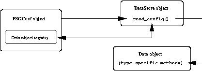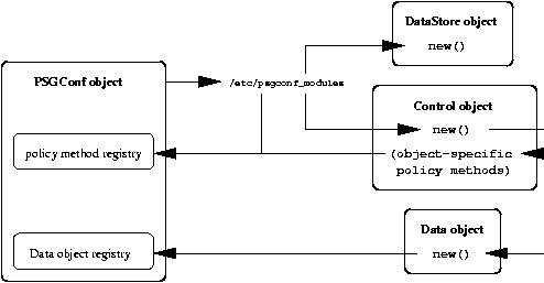 Despite these commonalities, most tools are very different from one another in the way that they put their components together to form a general strategy for configuration management. For example, ISConf takes the extreme approach of stepping through each state in a machine's configuration history in order to get to the current/desired state; cfengine is designed to converge from what a given file looks like now to what you want it to look like; and Simon is designed to generate individual configuration files from scratch. Unfortunately, most existing tools are designed monolithically, which means that you cannot choose the components or strategy independently. For example, there's no way to use cfengine's convergence strategy with Simon's SQL data store. There's also no way to use Simon's file generation strategy for some configuration files and cfengine's convergence strategy for others. This inflexibility results in a great deal of duplication of effort in the system administration community, because the only way to change out a single component or add support for a different strategy is to write a whole new tool. The new tool may include new components or support a different strategy, but a great deal of time is also spent duplicating existing components from other tools. A New Approach: The psgconf SystemHere at the University of Illinois at Urbana-Champaign (UIUC), I've developed a tool called psgconf to address these problems. Instead of being a monolithic tool with a fixed set of components, psgconf dynamically loads external modules that implement its components. This makes it very easy to add or remove components as needed. The psgconf system is written entirely in Perl, and its components are nothing more than Perl objects that provide the appropriate methods for the component type. This means that writing a new component for psgconf is as simple as writing a Perl module that provides the component's object class. Object StructureEach of the next subsections describes an object that is part of the psgconf system. The PSGConf ObjectThe central object in the psgconf system is provided by the PSGConf module. The PSGConf object is extremely simple; its primary function is to coordinate the activity of the other objects, which are where most of the work is actually done. Data ObjectsInstead of storing configuration data in static variables, psgconf encapsulates data in Data objects. This provides a great deal of flexibility in configuring the system, because each Data object class can provide whatever methods are appropriate for the encapsulated data. All Data object classes should be derived from the PSGConf::Data base class. The base class provides several fundamental methods, such as set(), get(), and unset(). However, new subclasses are free to override these methods or to add whatever new methods are appropriate for the type of data the class intends to represent. The psgconf system includes several such modules that provide useful Data object classes: