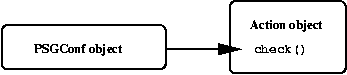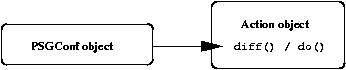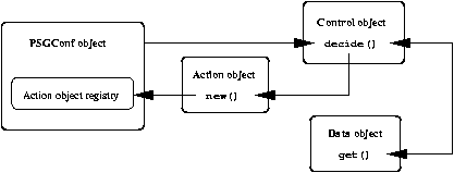 As each Data object is instantiated, it is registered with the central PSGConf object under a particular name, which can then be used to reference the object. For example, there might be a PSGConf::Data::String object called log_dir or a PSGConf::Data::Boolean object called anon_ftp_enable. DataStore ObjectsIn the psgconf framework, a system's configuration is expressed as a series of configuration statements that manipulate the registered Data objects. Each statement consists of the name of a Data object, a method to call on that object, and a list of arguments to pass to that method. The mechanism for reading these configuration statements is provided by DataStore objects. Each DataStore object provides a method called read_config() that reads configuration statements from some arbitrary source and executes the requested method calls. It might read the statements from a local configuration file using some particular syntax, or it might use a network protocol to read the statements from a remote configuration server (referred to as a "gold server"). It does not matter to psgconf how the statements are actually read, as long as the DataStore module can read the statements and execute the requested method calls. For example, the PSGConf::DataStore::ConfigFile DataStore object reads configuration statements from a local file using syntax that looks like this: log_dir->set "/var/log";This statement tells the DataStore object to look for a Data object named log_dir and call that object's set() method with the string /var/log as its argument. Action ObjectsAction objects represent actions to be performed on the system. All Action object classes should be derived from the PSGConf::Action base class, which provides several support methods. However, new subclasses should always define three important methods: check(), which determines whether the action actually needs to be performed or whether the system is already in compliance; diff(), which displays details about the changes that would be made to the system; and do(), which actually performs the action. The psgconf system includes many useful Action classes. See Table 1 for several examples. Action objects are processed in the order in which they are registered. This is discussed in more detail below. Control ObjectsControl objects are the real workhorses of the psgconf system. They are responsible for directing the overall process of configuring the system. From their constructor, Control objects can instantiate and register new Data objects. As mentioned above, each Data object is given a name as it is registered. For example, the PSGConf::Control::AnonFTP module registers the Data objects shown in Table 2.