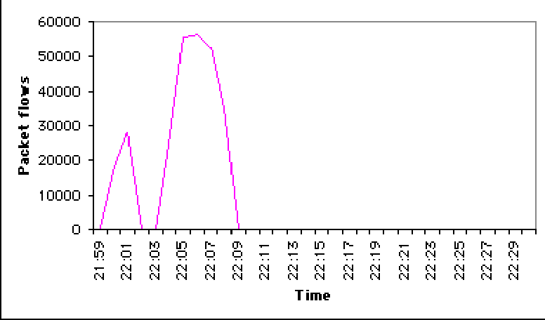 Shaft was initially detected through anomalous network activity. With the help of the network analyzer Argus [1], spikes (see Figure 2) in the packet flows led to the discovery of the shaftnode agent on the compromised system within the local network. It was one of about 100 nodes in a Shaft DDoS network. The successful retrieval of an attack binary, the shaftnode agent, and eventually its source, permitted a thorough analysis of its functionality.
