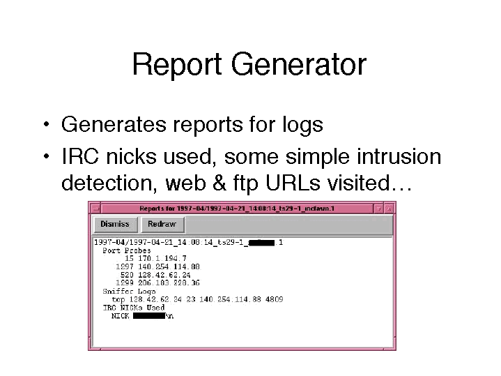 If you were to click on the entries (like the sniffer log found), “review” will try to find the corresponding session in the applicable log file and visit it in the session contents window.
