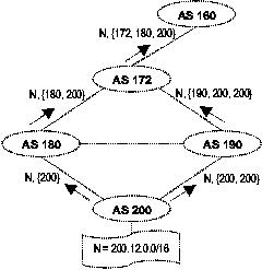 prefix N and an AS_PATH of the form