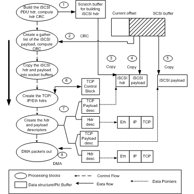 overview of the iSCSI protocol, and describe typical receive and transmit fast