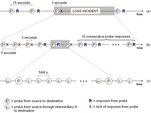 vantage points to probe 3,153 Internet destinations for failures over seven