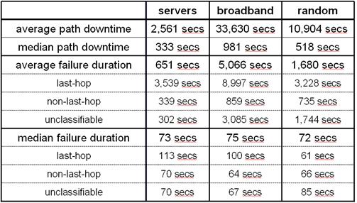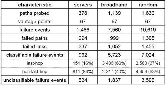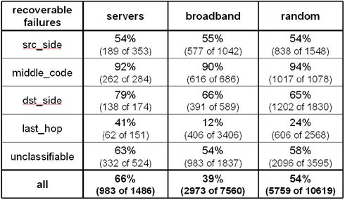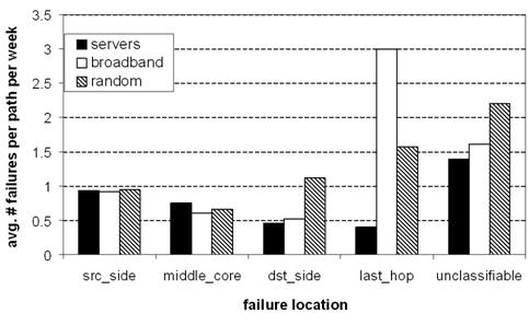 on paths to servers and 60% of failures on paths to broadband hosts occur were