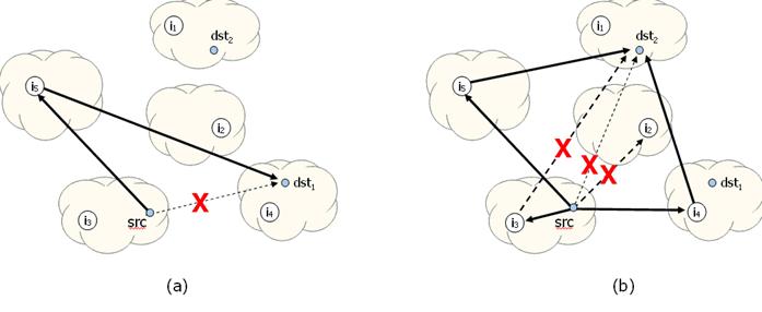 source routing. When a communication failure occurs, the source attempts