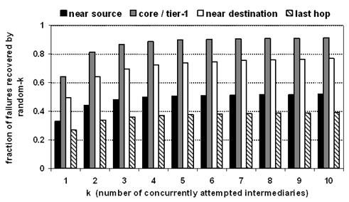 path failure occurs, our scheme attempts to recover from it by routing indirectly through a small set of randomly chosen intermediaries.