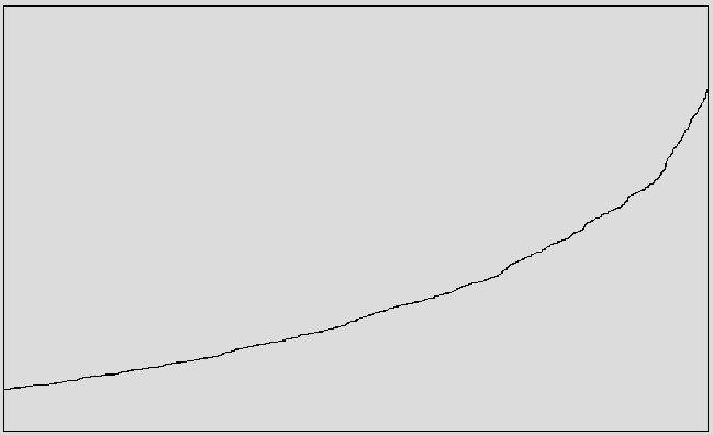 is equivalent to the total storage size, or more formally: ![]() where n is the total number of users in the quota system, d(t) is the disk space distribution curve, and ![]() Just as in traditional quota systems, a user can use any amount of disk space up to the maximum alloted by their position on the distribution curve. Because of the constraint on the area of the distribution curve, increasing the fraction of disk space for a single user reduces the amount of disk space alloted to every other user. Only changes to a certain user's allotment that do not infringe upon the actual usage of other users (barring explicit action from the system administrator) are considered valid. The new model offers an important advantage: a user's disk space is decoupled from the actual size of the resource. Thus, if the size of the resource changes, the user's alloted space changes while his relative share remains the same. Taxation of the resource is also reflected by this approach: increasing the number of users (in this case n) automatically decreases the amount allocated to each user. Still, the user's relative privilege remains the same throughout both changes. This approach also helps separate policy from network implementation; the distribution curve describes what the system administrator believes proper space allocation should look like, given the needs of his users and the amount of resources available, while the privilege mechanism determines where specific users fit into the system administrator's master plan. ![]() ![]() The model agrees closely with what system administrators currently try to implement as network policy, and incorporates Burgess' idea of competition as a way of maximizing resource efficiency. Here, the distribution curve can be thought of as the system administrator's optimal strategy: a user is given a share of the resource by the system administrator that reflects his given need (as determined by the level of privilege granted by the system administrator) while remaining in accordance with the administrator's general strategy. Giving a single user a larger share of the resource comes at the expense of all other users in the system, which is true of any finite resource, and captures the essence of competition. Consequently, changes are made to a global model, where each change affects the system as a whole, rather than a localized and segregated part. This has interesting consequences: in the model, the system administrator is no longer trying to limit users but is instead trying to protect and maximize a finite resource. Only changes that maintain the integrity of the storage and respect other users' use of it are valid. Towards an ImplementationSome concessions and design constraints were needed to create a successful, adoptable implementation. Above all, the tool needed to be capable of inter-operating with current quota implementations. To meet this requirement, a decision was made to push aside the implementation of the privilege mechanism and focus on the analysis and global manipulation of the quota system. The tool could then use the existing quota system for its back-end operations, while providing the user with an interface that best agreed with the new model. `Qualm' was created as a compromise between the new quota management model and the inter-operability requirement. The goal in creating Qualm was to create an interface that allowed the system administrator to quickly and easily visualize the state of his quota system, assess problem areas, and make global changes. A flexible interface was also important; if the new interface were to replace the existing quota management interface, the system administrator would need to be able to tailor the displays to reflect his particular needs. In order to form a scalable view of the state of the quota system that faithfully conveys the global distribution of the data and its interrelationships, several features of xscal's display model were employed. Building upon the graphing techniques used by xscal enabled Qualm to avoid many of the performance problems inherent in generating plots for large data sets. Sorting of the data was used to expose trends and groupings inherent in the data set. Qualm moves beyond xscal's abilities in this regard by allowing for multiple data fields to be displayed on a single plot, and allowing for hierarchical sorting. Using hierarchical sorting, secondary fields can be sorted with regard to the result of sorting their parent fields, exposing categories within the data, and trends within those categories. Qualm's displays use a sum of step functions to depict transitions between values. Because of the large number of data points used in creating the display, a ``continuum effect'' occurs and these step functions appear to form a smooth distribution curve. Upon closer inspection (using zooming), the steps become more apparent. The step function provides a nice emphasis on the values and transitions between data points without introducing any graphical artifacts. However, the step function is not always ideal when plotting multiple fields on a single graph. In such cases, Qualm provides alternate display mechanisms, such as error bars that extend away from the primary plot, or scattered data plots. Furthermore, Qualm's capabilities are modular and extensible. Access to the underlying resource, such as quota data or a flat file, is implemented as a module, so Qualm can easily be extended to work on top of other resources. In addition, Qualm's graphing library provides the system administrator with the tools needed to create new graph types or extend existing graph types, so displays can better be tailored towards the administrator's need. ![]() ![]() Performing Analysis with QualmRunning Qualm on the Tufts University EECS network produced some remarkable results. Figure 5 shows a display of block usage for all EECS users. Values of numbers of blocks used appear on the vertical axis and range