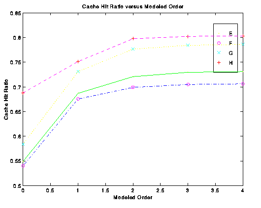 4 : Cache hit ratio versus model order (cache size 4 megabytes,